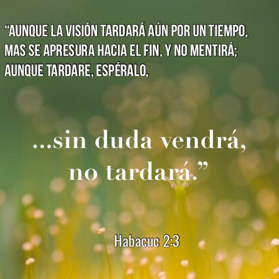 "La visión va a tardar todavía algún tiempo, pero su cumplimiento se acerca, y no dejará de cumplirse. Aunque tarde, espera a que llegue, porque vendrá sin falta." Habacuc 2:3